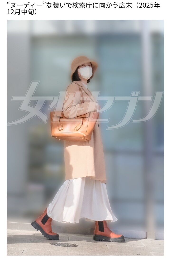 2025年12月中旬、広末涼子(45才)の姿は静岡県浜松市にあった。白いロングスカートにベージュのコート、同系色のバケットハットをかぶった“ヌーディースタイル”の彼女が向かった先は静岡地方検察庁。