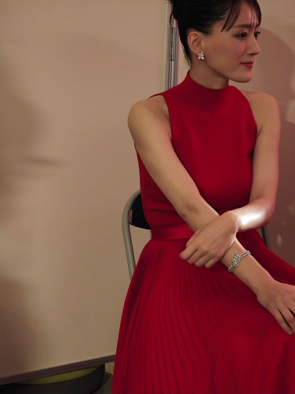 ノースリーブの赤ドレスは肩幅厳ついし金太郎に見えたわw