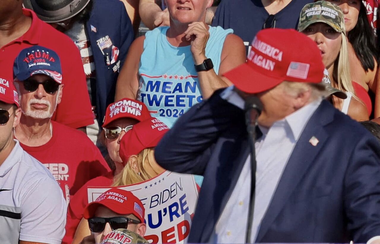 トランプ氏は「ビュンビュンという音と銃声が聞こえ、すぐに銃弾が皮膚を裂くのを感じた」と述べた(ワシントン時事)