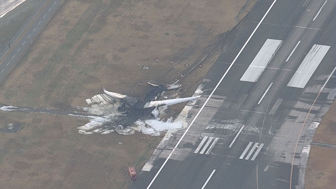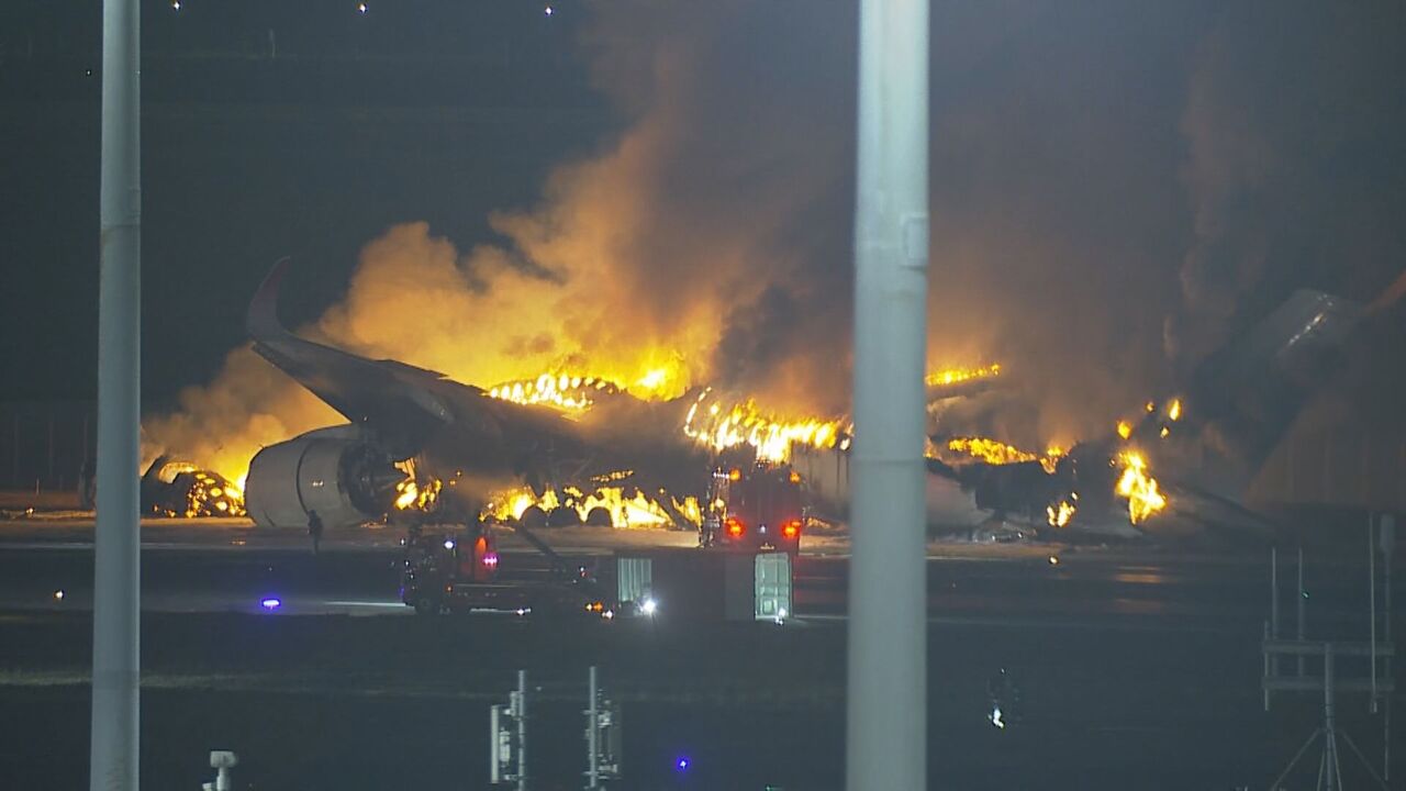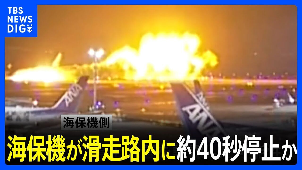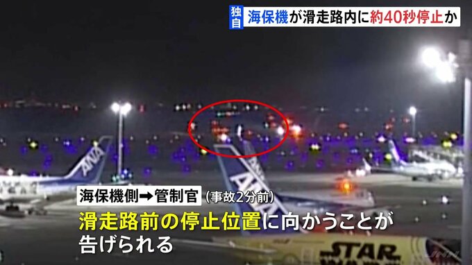 JNNのカメラには事故の直前、滑走路に向かって進む海保機が映っていました。映像では、海保機が滑走路内とみられる場所まで進み停止していて、それからおよそ40秒後、日本航空機と衝突し、大きな炎が上がりました。