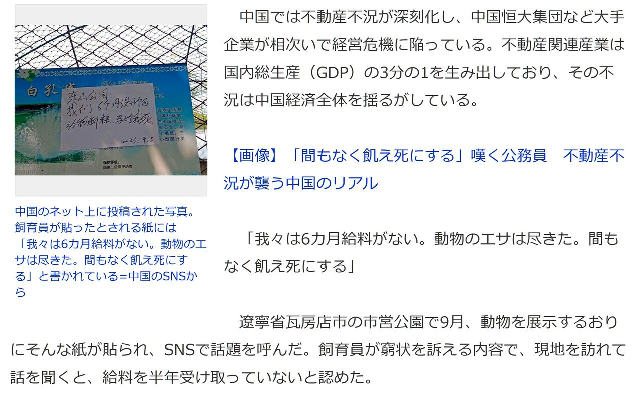 | 中国の地方公務員「半年給料ない」 不動産不況で財政悪化(朝日新聞デジタル) - Yahoo!ニュース - Yahoo!ニュース 中国の地方公務員「半年給料ない」 不動産不況で財政悪化(朝日新聞デジタル) - Yahoo!ニュース Yahoo!ニュース (出典:Yahoo!ニュース) |